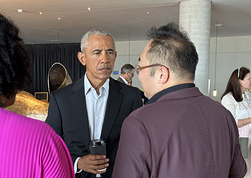 当地时间6月22日下午,美宝集团董事局主席徐鹏与美国第44任总统奥巴马再次聚首于希腊雅典-Stavros Niarchos基金会文化中心。这是奥巴马总统为奥巴马基金会长期支持者举办的一个小型私人聚会。徐鹏与奥巴马总统亲切交谈并向总统请教如何成功举办APEC峰会。近二十年来美国只在2008年奥巴马总统任内作为东道主举办过一次APEC峰会。而徐鹏目前是旧金山APEC2023协办单位湾区委员会的APEC工作组组长。奥巴马总统给出了他的经验和建议并予以鼓励。