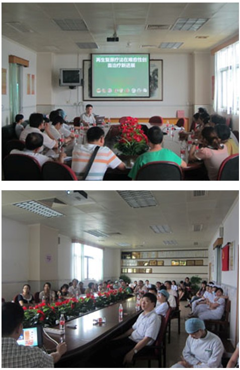 2012年8月6日下午,应广东省中山市三乡人民医院之邀,中国中西医结合学会烧伤专业委员会常委兼秘书、《中国烧伤创疡杂志》副总编辑、北京美宝烧伤创疡研究所副所长、第二临床研究部主任王洪生研究员到医院做“再生复原疗法在深度烧伤及难愈性创面治疗新进展”专题学术讲座。中山市三乡人民医院的外科、骨科、妇产科、ICU医护人员及三乡地区的16个卫生站的医护人员共计110多人加了此次培训,在学术讲座中,王主任首先向与会的专家介绍了著名生命科学家、医学家、人体再生复原科学的创立者、再生复原疗法的发明人徐荣祥教授近年来在再生医学领域所取得的重大实验及临床研究成果,而后王主任结合了大量的临床病例图片及录像资料,主要针对深度烧伤及各类难愈性创伤、溃疡创面的规范化处理方法与技巧、注意事项等进行了细致地讲解,在座的各位医护均被这神奇的疗法折服。会后,医护人员向王主任询问了临床上所遇到的问题,王主任一一作了详细解答。该医院办公室邝主任作总结发言时,高度赞扬了再生复原疗法,称之为一种为患者带来福音的一种疗法。随后,应外科黎主任的邀请,王主任亲自到外科科室对一例烧伤患者和一例老年深度烧伤患者进行了会诊,并提出治疗建议。