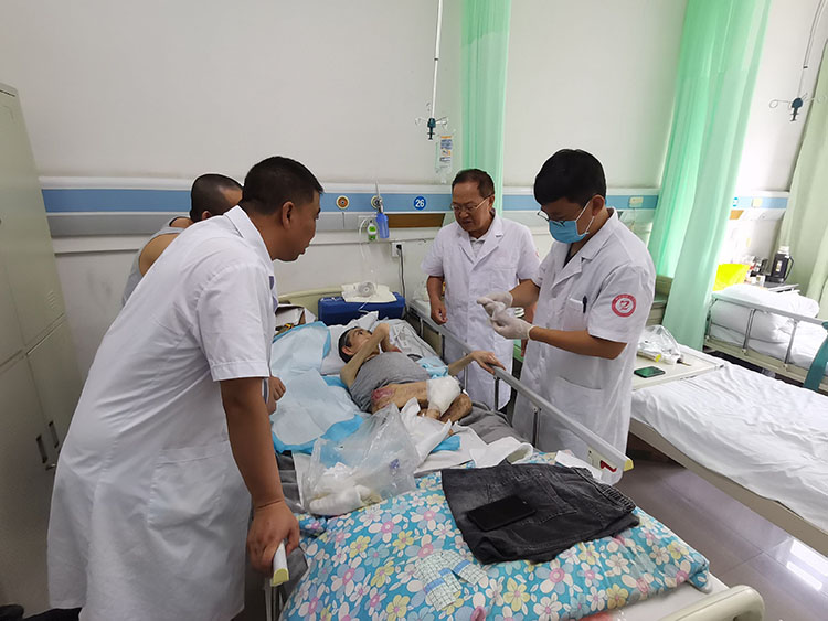2025年7月16日,《中国烧伤创疡杂志》编委,烧伤创疡再生医疗技术临床专家张强主任,到访湖北宜昌枝江市人民医院甲乳烧伤外科,和科室李主任,王医生等共同会诊一例偏瘫烧伤患者和一例四期压力性损伤高龄患者。张主任对创面清理及油纱填塞技巧做了技术指导,并讲解再生技术应用原理。此次会诊进一步提升医护人员临床应用技巧,受到好评!
