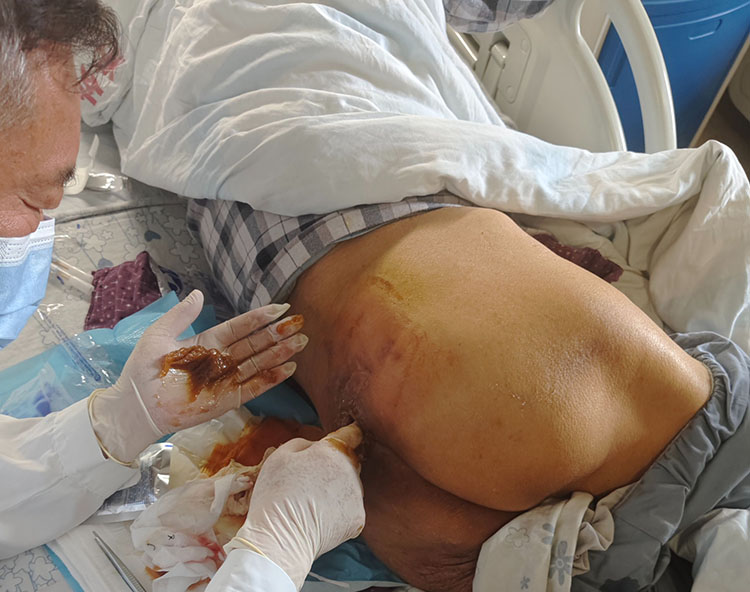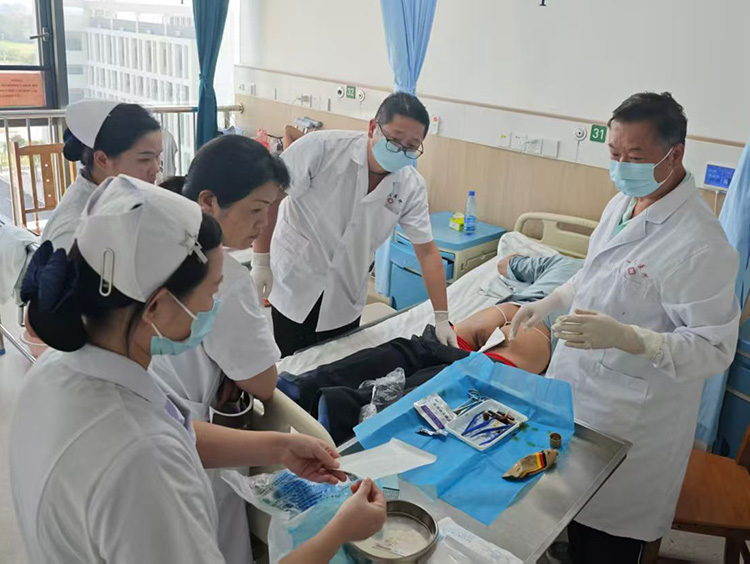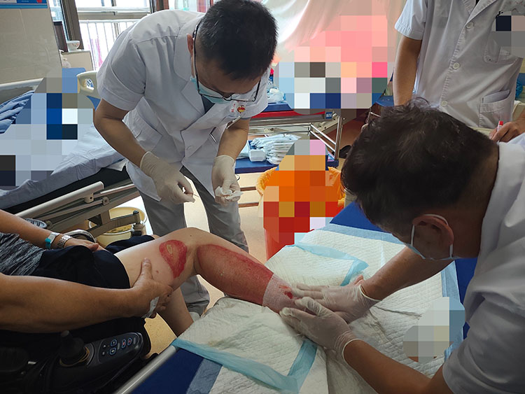 7月12日,应山西国药同煤二医院邀请,《中国烧伤创疡杂志》常务编委、烧伤创疡再生医疗技术临床专家赵瑞庆在该医院对收治的19例慢创患者进行逐一查房检查,针对其中8例患者亲自示范处置演示,在院期间还为一名截瘫矿工行骶尾部压疮皮簇种植术。