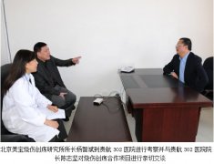 2013年4月14日,北京美宝烧伤创疡研究所所长杨智斌,中国中西医结合学会烧伤委员会常委兼秘书、《中国烧伤创疡杂志》副总编、北京美宝烧伤创疡研究所副所长、临床部主任王洪生研究员专程到中航工业贵航三0二医院与医院领导洽谈进一步合作开办中国中西医结合学会烧伤专委会贵州省安顺市烧伤创疡培训基地事宜,并深入医院烧伤创疡手足外科指导烧伤创疡临床治疗工作。