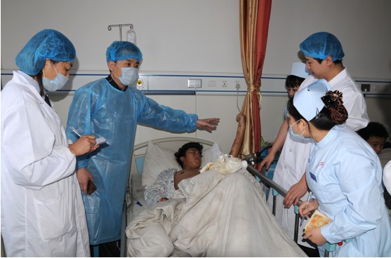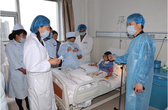 王教授还为医院专业人员作了烧伤治疗技术讲座,并亲自示范换药,通过言传身教指导医院专业人员对存在的技术难点进行解答,同时讲授了当今国际先进的烧伤创疡治疗技术。王教授希望三0二医院在强大的技术优势的带领下,要努力共创优秀的专科品牌,为广大患者造福。