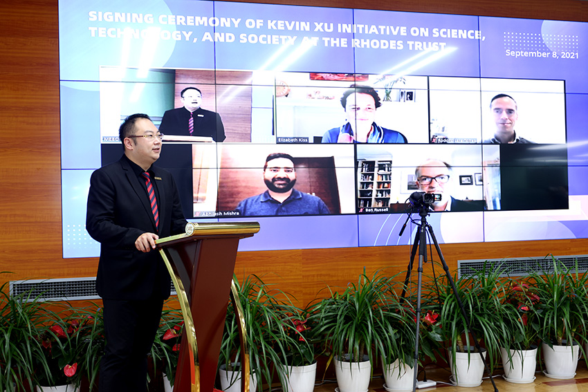 2021年9月8 日,牛津大学罗德学院“徐鹏智库”科学、技术和社会发展倡议签约仪式在线举行。牛津大学罗德信托CEO、罗德学院院长Elizabeth Kiss,罗德信托全球合作总监Rodolfo Lara,公关部主任Ben Russell;芝加哥大学“徐鹏智库”科学、技术和全球发展倡议主任Abhilash Mishra博士;美宝集团董事局徐鹏、李俐,总裁杨智斌,副总裁陈宝琪、张倩、刘钢等出席了此次签约仪式。