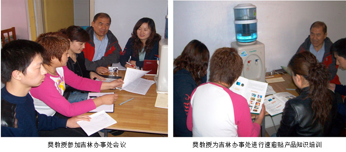 在培训会上樊教授对吉林办事处人员详细讲解了美宝速愈贴的机理、使用方法、使用中的各种注意事项以及其它成功省份的推广经验等,指导办事处人员磨好推广“第一剑”, 建立好与医护人员之间的对话平台,为技术的深入推广开发奠定基础。