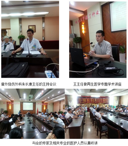2012年9月7日,中国中西医结合学会烧伤专业委员会常务兼秘书、《中国烧伤创疡杂志》副总编辑、北京美宝烧伤创疡研究所副所长、第二临床研究部主任王洪生研究员应重庆市北碚区中医院的邀请来到该院,为全院医护人员做了一场精彩的学术讲座。听取此次学术讲座的有该院外一科、外二科、肛肠科、皮肤科、五官科、骨一科、骨二科、急诊科、治未病科、重症医学科、麻醉科、妇产科、儿科、肺病科、脑病科、内一科、内二科、针灸科、北泉社区、龙泉社区、朝阳社区及相关行政科室60余人参加。下午3点,在普外烧伤外科朱长康主任的主持下,全体医护人员以热烈的掌声把王主任请上了讲台,王主任以“再生复原疗法在深度烧伤及难愈性创面治疗新进展”为题做了长达近3个小时的讲座,全面讲解了再生医学的概念、发展,并结合大量的病例图片讲解了再生医疗技术在大面积深度烧伤、骨外露、钢板外露、糖尿病足、褥疮等各种难愈合创面的治疗过程及要点,讲解了再生医疗技术在各个临床科室的应用。会议结束后,大家都被再生医学医疗技术的神奇效果所折服,包括骨科、妇产科、皮肤科的一些医护人员会后都向王主任请教,并索要相关资料,大家都表示今天听了再生医疗技术新的治疗方法给他们带来了启发,并解决了他们在临床工作中的一些难题,表示一定会利用再生医疗技术的先进性在今后的临床工作中进一步开展工作。