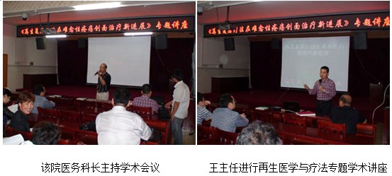 2012年10月29日,应该院邀请中国中西医结合学会烧伤专业委员会常委兼秘书、《中国烧伤创疡杂志》副总编辑、北京烧伤创疡研究所副所长、临床研究部主任王洪生研究员到该医院进行“再生复原疗法在烧伤及难治性创伤、溃疡创面治疗临床规范化应用及新进展”专题讲座。讲座开始前的当日下午,王主任应邀并在该医院医务科长兼普外、泌尿、胸外、烧伤外科主任的陪同下首先深入该科病房为1例高压电烧伤3个月创面不愈的慢性溃疡创面、1例老年烧伤患者、1例少儿烧伤患者、1例左臀部蜂窝织炎患者、1例左小腿溃疡患者进行了会诊,然后又到该医院骨科、神经外科病房在该医院骨科主任的陪同下为1例糖尿病合并左小腿骨科创疡患者进行了会诊。专题学术讲座于当日晚上7点半在该医院会议室举行,该院烧伤科、骨科、普外科、肿瘤科、内科、皮肤科和妇产科的相关专业200余名专家及医护人员参加了学术会议。在专题学术讲座中,王主任结合了大量的临床病例图片,针对不同深度的烧伤创面及各类难愈性创伤、溃疡创面的规范化处理方法与技巧、注意事项等进行了细致地讲解。在会的医护人员看到大量真实的临床病例资料图片后,都被再生医疗技术良好的治疗效果所震撼与折服。此次讲座深受会者的欢迎,再生复原技术为医护人员在临床上提供了一条新的治疗思路,开阔了医护工作者的视野,增长了新的知识。