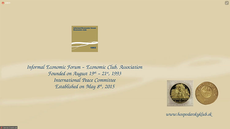 会议中,欧洲非正式经济论坛主席Peter Kasalovsky代表国际和平委员会宣布了2021年“斯洛伐克2015年和平奖”得主——芬兰总理Sanna Marin及法国企业家、资深作家Jacques Hogard。