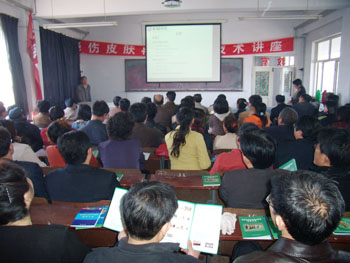 经过近几年来的推广普及维护,张家口市区县内各级医疗单位,不同程度的应用着烧伤皮肤原位再生医疗技术,从而满足了部分烧伤患者的就医需求,解决了医生在治疗患者中遇到的难题。张家口是一个地域辽阔、人群居住分散、交通欠发达的地区,烧伤皮肤原位再生医疗技术推广起来有一定的难度。今年春季以来 ,张家口市卫生局科教科在熟知该项技术是“国家十年百项科技成果”且已被国家列为“星火计划”推广项目之后,为了更大范围、更加深入的向基层推广,更好的让医务人员解决基层烧伤创疡患者的痛苦,对烧伤皮肤原位再生医疗技术的推广给予了高度重视,并以书面文件要求各县级卫生局给予支持。中国中西医结合学会烧伤专业委员会于四月二十三和二十五日,分别在涿鹿县和阳原县,举办了由县内各级医疗单位相关科室医务人员参加的培训班,两个班的听课人数分别为135人和105人。在培训班上,由医疗部樊兆宗主任,重点讲解了烧伤皮肤原位再生医疗技术的规范应用,以及再生疗法在多学科的应用和进展。大家对讲座非常感兴趣,学习热情很高,会后又进行了互动和交流,加强了县级医院和乡村医生的合作,起到很好的技术开发推广和巩固的作用。与会人员对“中国中西医结合学会烧伤专业委员会”给基层医院、卫生院以及诊所送来这样好的技术,协助他们解决临床上的难题,一再表示感谢。通过这两次办班我们也深深体会到:“烧伤皮肤再生医疗技术”是深受基层医疗单位和广大患者欢迎的好技术,我们一定要再接再厉。与此同时把“人体再生养生保健”和“速愈贴”介绍给大家。把烧伤皮肤再生医疗技术推广工作,做的更好!