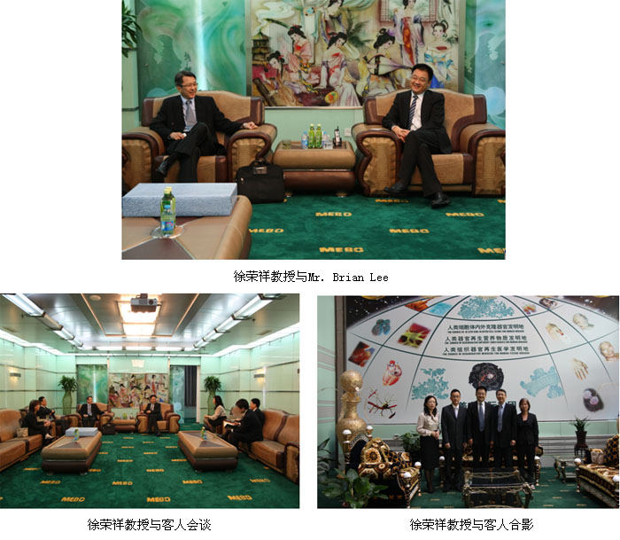 5月19日上午,在孙总的陪同下,Triniaire三位高层怀着无比激动的心情在集团贵宾室受到了德高望重的人体再生生命科学的创始人、美宝国际集团董事长徐荣祥教授的接见。徐荣祥教授首先对三位尊贵客人的来访表示欢迎,接着对人体再生生命科学的目前最新的科研动态以及未来美宝国集团的科学和整个战略规划做了阐述和说明,这项伟大技术的意义在于找到了人类生命科学的发展规律,解决了人类目前面临的癌症、养生等方面的世界问题,所以徐教授的人体再生生命科学必将改变目前医学发展的领域和方向,Triniare董事长Mr. Bryan Lee Hui Leong感谢徐教授在百忙之中抽出时间与马来西亚合作伙伴会面,听完徐教授的讲话,使他感觉到人体再生生命科学和技术必将成为一个历史的趋势,人体再生生命科学的霸主地位指日可待! Mr. Manhon Shiew总经理对徐荣祥教授高瞻远瞩的战略思维表示惊叹不已,称跟徐教授相比,自己确实是冰山一角。对于客人请教的问题,徐教授也给予了形象的比喻回答,客人对徐教授的人生观和价值观深深折服,并表示一定将徐教授的发明和创造在马来西亚推广开来造福更多的人们!