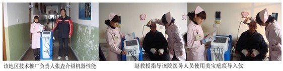 元月中旬刚开完北京总部2012年的工作会议后,中国烧伤疮疡研究所副所长赵瑞庆教授了解到山西解放军282医院烧伤科赵兴中主任在治疗烧伤病人的基础上,准备在2012年开展治疗疤痕项目。在地区再生医学推广负责人张垚的陪同下,乘车赶往驻地。赵教授向该院医务人员认真讲解了美宝疤痕仪的机理、操作程序以及美宝疤痕软膏的功能特点,重点讲解了临床上常见的疤痕分类、疤痕形成的各种因素。采用美宝疤痕仪治疗新鲜疤痕,陈旧疤痕的措施。现场亲自指导该院医务人员操作,直到完全掌握为止。