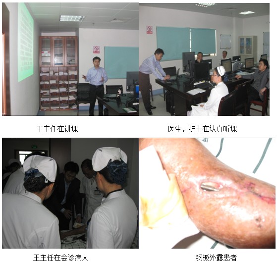 会后,陈主任邀请王主任会诊了一位骨折钢板外露的糖尿病患者,并与该科室全体专家、医生和护士长等医护人员做了进一步的技术实施的交流与沟通。