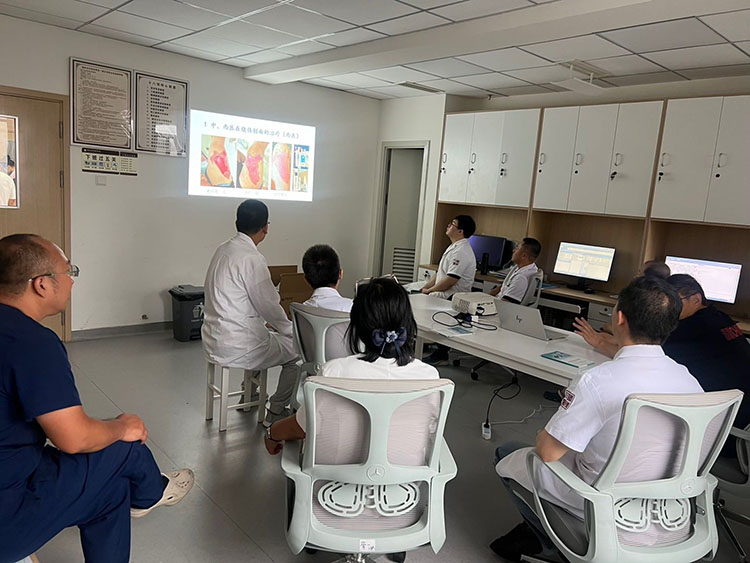 2025年8月6日,中国中医药高等教育学会临床教育研究会肛肠分会常务理事、北京中西医结合学会烧伤专业委员会副主任委员、北京中医药学会肛肠专业委员会委员、《中国烧伤创疡杂志》常务编委张勇,应邀来到铁岭市中医医院进行再生医疗技术学术讲座,张教授通过丰富的临床病例,讲述了换药流程中的操作要点、用药原则及注意事项,会中医护人员就创面问题跟张教授进行了探讨和交流,同时会诊一例创面患者,并进行换药实际操作,受到全体医护人员的认可与好评!