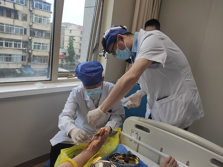 赵瑞庆教授受邀到张家港港成康复医院创面修复科会诊治疗
