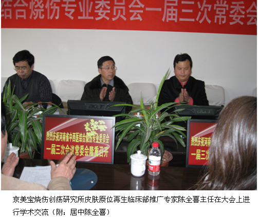 上午8:30分,中国中西医学会烧伤专业委员会,河南省中西医结合学会副主任委员,河南省中华医学会烧伤外科专业委员会副主任委员,河大附院南石医院烧伤科主任、医学博士李天宇宣布:河南省中西医结合学会烧伤专业委员会第一届三次常委会正式开始。中国中西医结合学会烧伤专业委员会副主任委员,河南省中西医结合学会烧伤专业委员会主任委员,河南省中华医学会医师协会烧伤专业委员会会长,河大附院南石医院院长、主任医师、赵俊祥教授致大会开幕词并进行了发言。赵俊祥教授讲到:该院从1988年就开始采用徐荣祥教授发明的烧伤湿润暴露疗法,到现在已经有22年的临床应用经验,在此期间,南石医院发生了天翻地覆地变化,医院由原来的50张病床,现已发展到896张病床,已成为国家三级综合医院,预计该院到2015年将发展到1500张床位。烧伤科从1988年没有设门诊科室到现在设有门诊科室,并有烧伤专科90张病床,由原来无收入到现在每年1000多万的经济效益,烧伤湿润暴露疗法已经治愈了一千多例大面积深度烧伤患者,并荣获河南省级科研成果二等奖。赵俊祥教授用大量的烧伤患者治疗前后的对比照片,向与会人员展示了烧伤湿润暴露疗法的良好疗效,使在坐的教授与专家们赞叹不已。在河南省中西医结合学会烧伤专业委员会副主任委员、河南省中华医学会开封分会秘书长、开封第一人民医院业务院长李华强教授,河南省中西医结合学会烧伤专业委员会副主任委员、河南省中华医学会漯河分会烧伤专业委员会主任委员王秉真主任,河南省中西医结合学会烧伤专业委员会副主任委员、河南省中华医学会烧伤外科专业委员会副主任委员李天宇教授等依次发言介绍该项技术在临床应用的效果后,北京美宝烧伤创疡研究所临床部、皮肤原位再生医疗技术推广专家陈全喜教授向大家介绍了皮肤原位再生技术系列产品美宝疤痕软膏治疗疤痕和早期预防疤痕的讲座,并与大家进行了学术交流。通过多位领导向大家介绍应用烧伤湿润暴露疗法,分享自己在临床总结的经验,展示了该技术的良好临床治疗效果,使与会的专家及教授更加深入地了解了烧伤湿润医疗技术和再生复原科学在世界生命科学所处的领先地位,大家表示会将这项先进的技术带回自己的医院,并尽快在全院展开培训,在多学科进行推广应用,相信会造福更多的创伤、溃疡患者,造福广大人民群众。 本次学术会议在下午17:30圆满地拉下了帷幕。