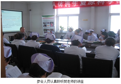 辽宁新宾县满族的发源地是清太祖努尔哈赤的出生地,人口32万,在这人杰地灵的清皇故里,2012年4月12日下午,新宾满族自治县人民医院的会议室内,受该院长王娥邀请的中国中西医结合学会烧伤专业委员会委员、《中国烧伤创疡》杂志常委编委樊兆宗教授正在绘声绘色的讲解“人体原位再生复原科学“多学科临床应用的讲座。