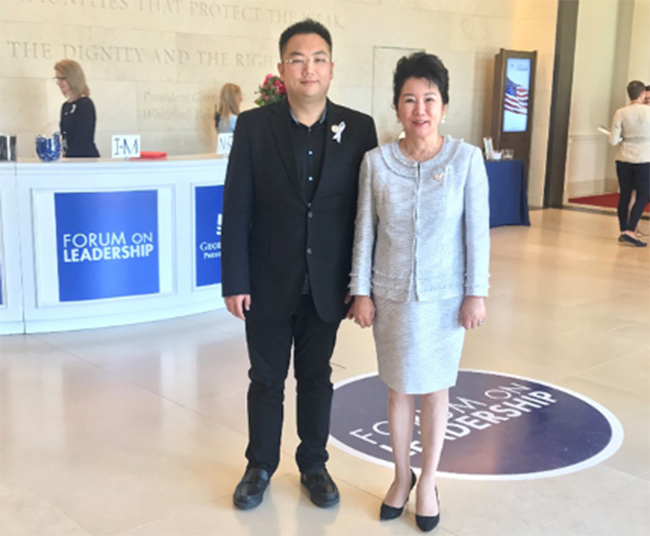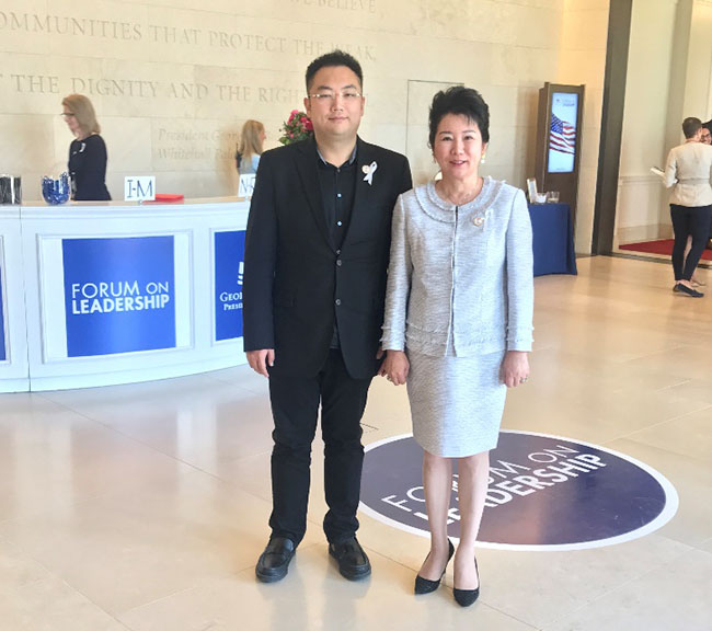 2018年4月18-20日,在美国得克萨斯州达拉斯市乔治•布什总统中心举行为期三天的领导力论坛系列活动,前总统乔治•布什及其夫人劳拉•布什,前副总统切尼及其夫人、前国务卿赖斯女士、前国会议长博纳先生以及亚马逊创始人CEO贝佐斯先生等重要嘉宾出席本次论坛。应布什总统中心的邀请,美宝集团董事局主席及国际再生医学与创面修复学会总裁徐鹏先生、美宝集团董事局副主席及美国徐荣祥基金会主席李俐女士也出席了本次论坛,并作为特别嘉宾出席布什总统及切尼副总统各自主办的小范围招待会。本次论坛开幕前一天,乔治•布什总统的母亲、美国前第一夫人芭芭拉•布什于17日晚间去世,享年92岁。本次论坛于18日依旧如期举行,只是来宾胸前都别了一个小白丝带表示悼念。