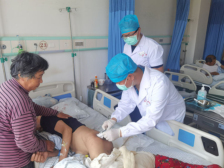 5月25日,应江苏大丰人民医院之邀,《中国烧伤创疡杂志》常务编委、烧伤创疡再生医疗技术临床专家赵瑞庆,在该院会诊了五例慢创病人(糖足溃疡三例、压疮二例)。其中一例压疮较大合併痂下深层组织感染,在讨论环节分轻重缓急一对一给岀了治疗方案,受到当地医务人员的称赞。
