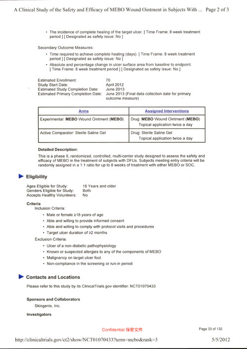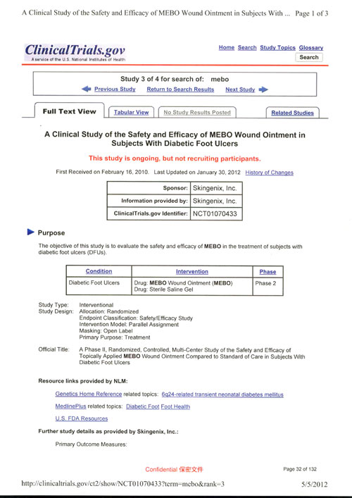据悉,面对糖尿病溃疡这种高发病率、高截肢率、高病死率及高复发率的无药可医的疾病,我国政府SFDA与美国政府FDA近期几乎同一时间批准原位再生皮肤技术的专用药品美宝湿润烧伤膏(MEBO)作为糖尿病溃疡专用药进行临床研究。这也是美国FDA批准的第一个全植物营养成分的药品临床研究。