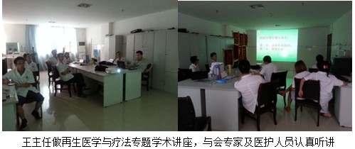 讲座结束后,该科室主任及专家、医护人员和王主任一起进一步讨论了再生医学医疗技术的治疗要点,特别是再生复原疗法在褥疮、骨科慢性溃疡、难愈合创面、糖尿病足、断指再生等创面的治疗要点。