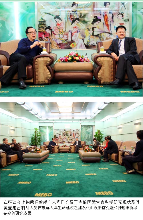 虎尾之年玉兔迎春,在世界生命科学界热论人体生命再生延续秘密的浓厚学术气氛中,应美宝国际集团董事局主席徐荣祥教授的邀请,中国医师协会常务副会长兼秘书长杨镜教授、副会长蔡忠军教授、陆君副秘书长、编辑部肖先福主任、办公室袁亚明主任等一行5人于12月23日莅临美宝集团总部参观指导。