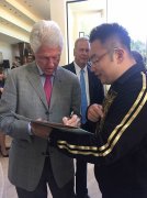 中秋节前徐鹏刚刚专程前往内华达州出席了克林顿夫妇在一场活动中提前为他准备的生日庆祝会,徐鹏与克林顿老友见面,相谈甚欢,也交流了徐荣祥基金会去意大利地震灾区探望之旅的情况。克林顿欣然提笔在徐鹏生日贺卡上签名留念。