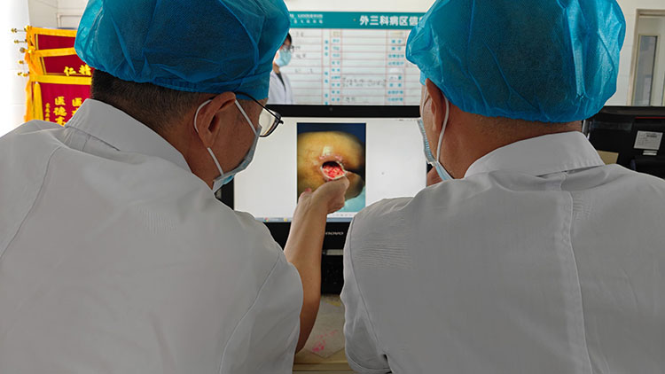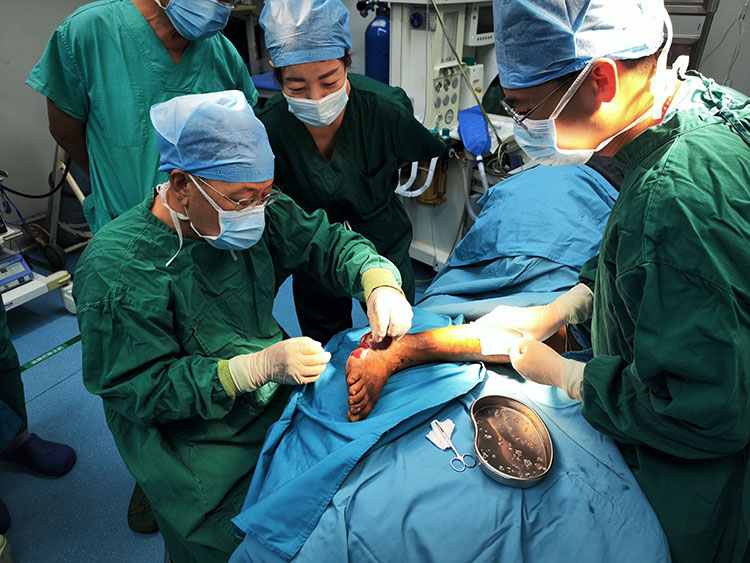 9月11日,应廊坊市安次区医院外科邀请,《中国烧伤创疡杂志》常务编委、烧伤创疡再生医疗技术临床专家赵瑞庆,为一例四级糖尿病足合并下肢血管闭塞患者行皮簇种植术,术中顺利出血不多,病人安返病区,得到了患者和主治医生的感谢和赞扬。