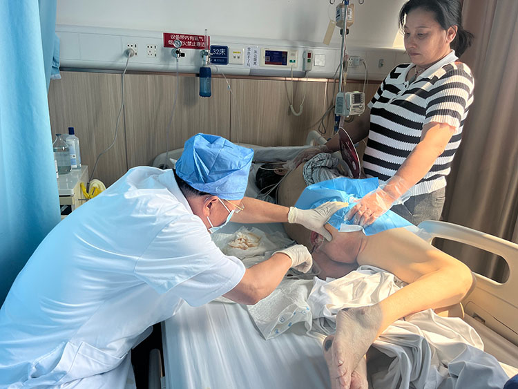 9月5日,中国中西医结合学会烧伤专业委员会常务委员、《中国烧伤创疡杂志》副总编辑王洪生主任到广东揭阳惠来县人民医院分别会诊了糖足,压疮,烧伤病人合计8位患者,并亲自示范规范换药并详细讲解下一步治疗方案和注意事项。