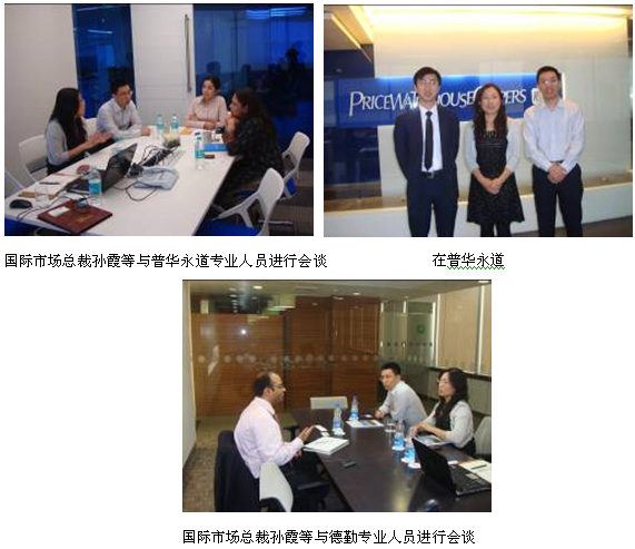 关于公司组建与运营的具体事宜,国际市场总部总裁孙霞、国际市场总监刘钢、印度市场经理兼医学技术支持专员张印一行三人前往新德里卫星城市Gurgaon,这里是新型城市和开发区,是众多国际企业云集所在。美宝代表团分别与普华永道国际会计公司(世界排名第一)与德勤国际会计公司(世界排名第三)进行了深入的交流与会谈。国际市场总部总裁孙霞,就印度外资投资政策、医药行业的特殊要求、公司组建细节与程序、公司运营、税务、审计等与这两家世界知名会计公司专业人员进行了非常详细地讨论,并初步确定了美宝印度分公司的组建与运营初步计划。