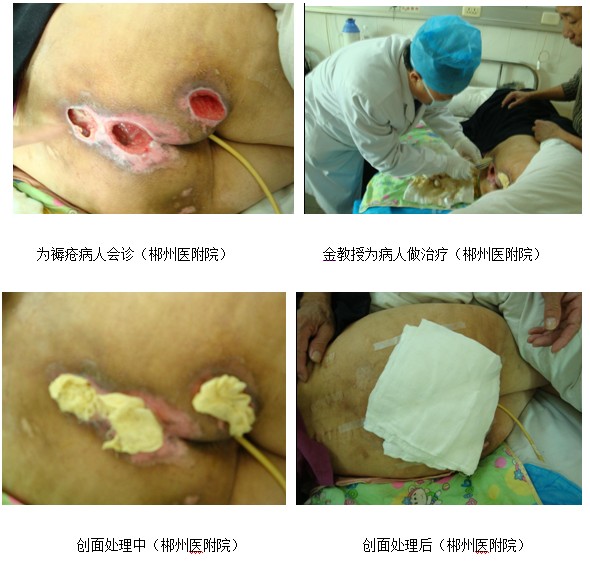 随后又分别走访了郴州中医院和市附属医院并对住院褥疮病人进行会诊。到病房示范换药并指导临床经治医生创面早期处理和换药时注意事项和方法。树立患者的治疗信心,使患者感到只有皮肤再生医疗技术才能带来的温馨与健康。