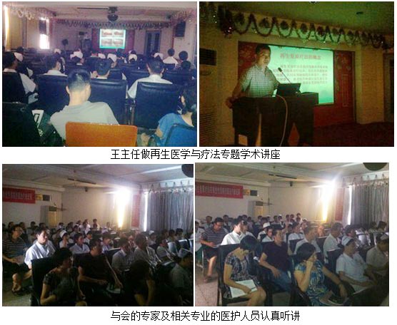 2012年8月31日下午应南安市中医院的邀请,中国中西医结合学会烧伤专业委员会常委兼秘书、《中国烧伤创疡杂志》副总编辑、北京美宝烧伤创疡研究所副所长,临床研究部主任王洪生研究员到医院做“再生复原疗法在难愈性创面治疗新进展”专题学术讲座。该医院信息科王惠萌科长主持了会议。王主任结合了大量的临床病例图片及录像资料,主要针对深度烧伤及各类难愈性创伤、溃疡创面、糖尿病足、放射性溃疡的规范化处理方法与技巧、注意事项等进行了细致地讲解,强调创面处理要大胆清创、减压、去除坏死组织,并保持创面生理的湿润环境,实现创面的再生复原,并建议对病人深达真皮层以下愈合后创面应进行防疤处理治疗。