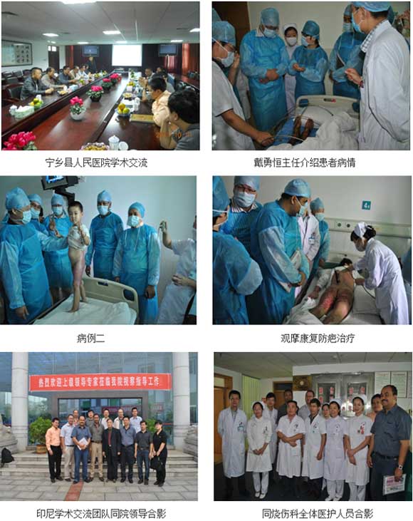 10月8日下午—11日湖南美宝总裁王波、中国烧伤创疡科技中心临床医疗部金党军主任、区域经理侯效东陪同赴华参观学习的印尼客人学术团队印度尼西亚烧伤专家印尼美宝Dr. Doni Azmar 医生带队,印尼棉兰市亚当马利克医院整形外科主治医师Dr. Utama Abdi Tarigan,印尼爪哇岛西部城市万隆市阿桑萨迪金医院的整形外科主治医师Dr. Ali Sundoro,印度尼西亚苏拉威西岛西南部港市孟加锡市的斯特拉马瑞斯医院的整形外科主治医师Dr. Leonardo Rieuwpassa、对浏阳市中医院烧伤科,湘雅三院烧伤科,宁乡县人民医院烧伤科的学术观摩,并进行了多场学术座谈交流 。最后金主任根据这几天的活动情况。针对学术交流团队在临床应用当中所遇到的诸多问题。利用两个小时结合大量详实的病例资料。详细的介绍了烧伤皮肤原位再生复原技术在烧伤,褥疮、溃疡、糖尿病足、创伤和康复期防疤治疗的临床诊疗要点及注意事项。得到他们的一致好评。