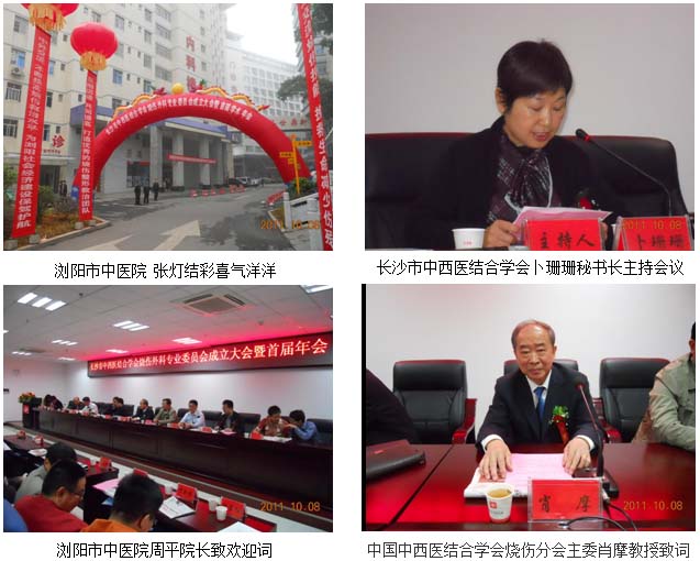 湖南中医科大学附属医院浏阳市中医院是一所规模较大、医疗设备齐全、医疗技术水平高、综合实力较强的一所集医疗、科研、教学于一体现代化综合性三级甲等中医院。2011年10月8日是浏阳市中医院双喜庆的日子,全院医护人员迎来了中国中西医结合学会烧伤专业委员会授予浏阳市中医院国际学术交流基地的成立授牌和长沙市医学会授予浏阳市中医院长沙市中西医结合学会烧伤专业委员会成立并授牌仪式。出席本次会议的有中国中西医结合学会烧伤专业委员会主任委员肖摩教授;湖南省中西医结合学会刘祖桢秘书长、长沙市卫生局黄赣湘副局长、长沙市中西医学会文体端会长、浏阳市卫生局赵文兵局长、 浏阳市中医院周平院长、印度尼西亚烧伤专家印尼美宝Dr. Doni Azmar 医生领队,长沙市中西医结合学会卜珊珊秘书长、 浏阳市卫生局邱正柳书记、浏阳市卫生局罗其美副局长。及来自江西、广东、湖北、印度尼西亚等100余人参加此次会议。会议由长沙市中西医结合学会卜珊珊秘书长主持,浏阳市中医院周平院长致欢迎词、中国中西医结合学会烧伤专业委员会主任委员肖摩教授、湖南省中西医结合学会刘祖桢秘书长、印度尼西亚烧伤专家多尼•阿兹马及长沙市、浏阳市的领导分别致贺词。并举行隆重的授牌仪式。
