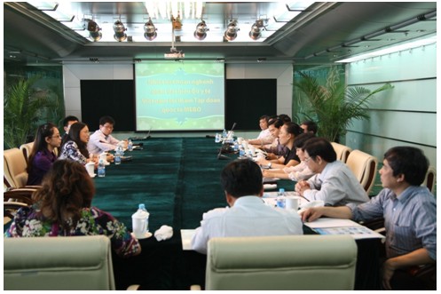在多功能会议厅,美宝国际集团代表,国际市场集团总裁孙总等4人接待了越南卫生部代表团。首先,孙总表达了对越南卫生部一行到访美宝国际集团的欢迎,并简短地介绍了集团的情况、目前海外市场的状况以及美宝的科学成就,使越南代表团对美宝国际集团有了综合的了解。