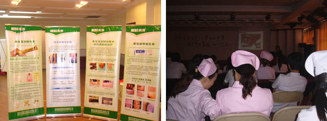 11月30日华东医疗部与安徽地方美宝一起在皖南泾县中医院成功举办了一期再生医学培训班,这是美宝国际集团首次在皖南事变发生地举办的技术推广活动,真正将高科技送到了革命老区,希望起到星火燎原的作用。另外由中国烧伤创疡分中心江苏金坛分中心——金坛中医院烧伤科承担、美宝华东医疗部协办的常州市卫生局2006年继续医学教育项目,历时半年,分别在金坛、溧阳和常州举办三期再生医学培训班,目前已告一段落。11月19日上午,常州市医学会烧伤专业委员会再次组织市一院,二院,武警常州消防支队卫生队,德安医院,武进人民医院,溧阳市人民医院的烧伤整形科专家,齐聚金坛市中医院皮肤烧伤科总结学习成果,并现场参观。烧伤科戴扬主任还重点介绍了美宝高科技产品创面速愈贴临床应用的效果情况,其展示的对比照片,引起与会专家们的浓厚兴致,大家纷纷索取资料,计划在临床推广使用。