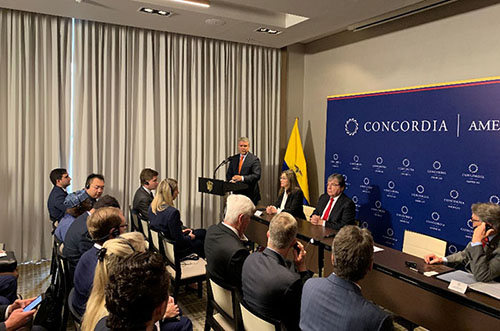 5月13-14日,CONCORDIA美洲峰会在哥伦比亚首都波哥大举行,美宝集团徐鹏总裁作为CONCORDIA全球精英会员应邀出席大会并与哥伦比亚总统马尔克斯先生、尼日利亚前总统奥巴桑乔先生、哥伦比亚内阁部长及议会领袖们共同见证了哥伦比亚与美国就能源方面签署合作协议。