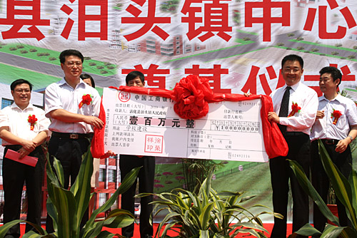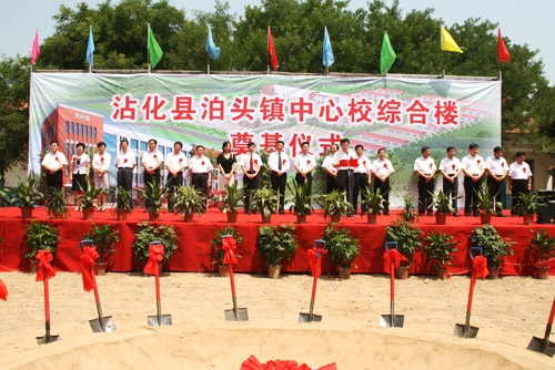 7月6日上午10时,山东省滨州市沾化县泊头镇小学内到处洋溢着热烈的气氛,由美宝国际集团董事局主席徐荣祥教授捐资一百万,当地政府规划建设的中心小学奠基仪式在此隆重举行。