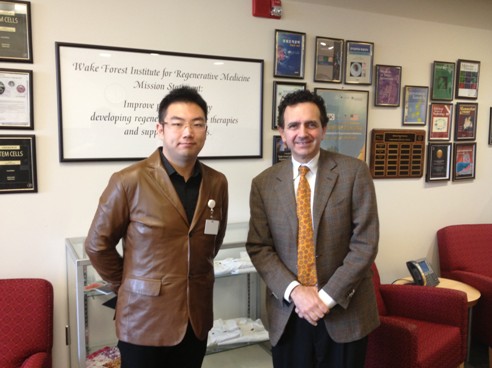 美国顶级再生医学研究机构,首创组织工程技术的维克森林(wake forest university)再生医学研究所所长Atala博士获悉美宝国际董事长徐荣祥教授的器官再生应用研究后很感兴趣,特此于2013年4月11日邀请美国美宝国际美国总裁和再生X基金会创始人徐鹏先生访问其再生医学研究所,徐鹏于近日已对维克森林再生医学研究所进行了访问。访问情况报道如下: