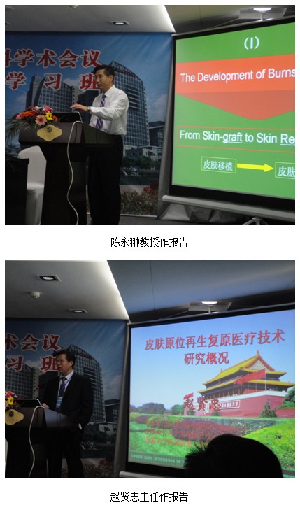 中国中西医结合学会烧伤专业委员会副主委、南通大学医学院副教授、南通第三人民医院烧伤科主任赵贤忠以“皮肤原位再生复原医疗技术”为题,进行了学术讲座,赵主任以丰富的临床经验,介绍了创面原位修复技能及人体干细胞研究。赵主任的学术报告受到与会人员的一致好评。