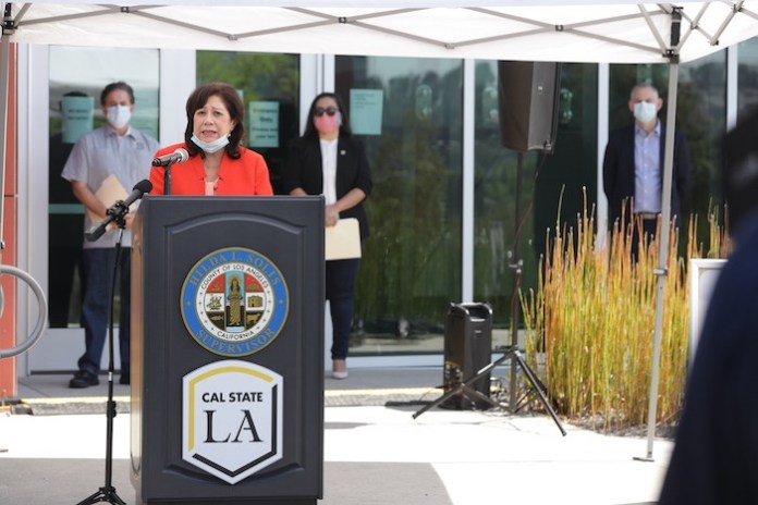 5月9日,一个新的新冠肺炎免费检测点在加州州立大学洛杉矶分校徐荣祥生物科学创新中心(Rongxiang Xu Bioscience Innovation Center)正式启动,徐荣祥生物科学创新中心将在新冠肺炎大流行中发挥重要作用,为当地社区提供安全、准确的COVID-19检测,帮助阻止病毒的传播。该站点由洛杉矶州大与洛杉矶郡政府以及加州州长办公室合作设立。