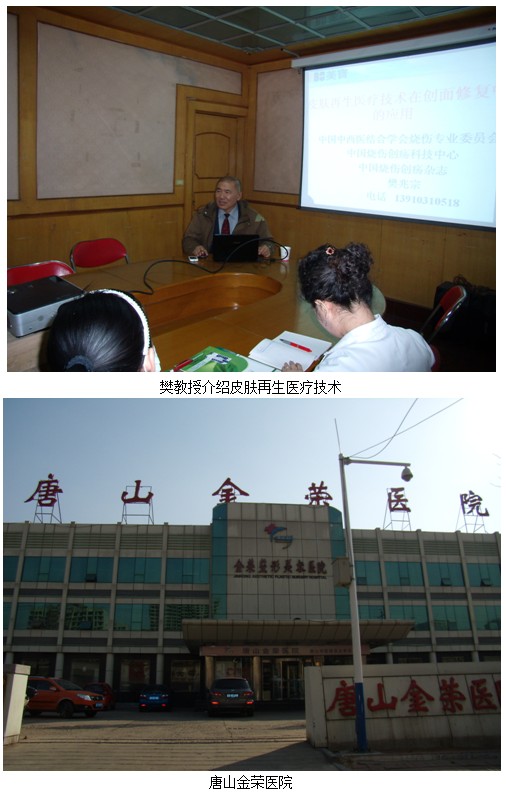2012年3月12日,再生医学知名专家、中国中西医结合学会烧伤专业委员会常委、《中国烧伤创疡杂志》常务编委、中国烧伤创疡科技中心医疗部主任樊兆宗教授应邀来到河北唐山,在唐山金荣整形美容医院进行再生医疗技术在美容整形学科的应用学术讲座。