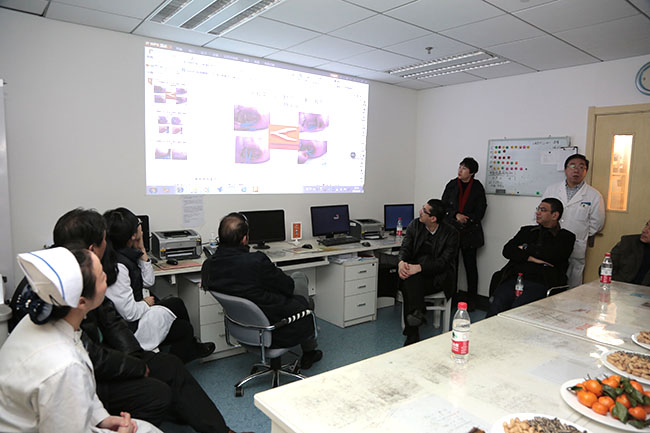 宣武中医院李副院长、科教科主任和外科主任张勇教授欢迎外宾的到来,张勇主任首先介绍了徐荣祥教授与宣武医院深厚的历史渊源。早在1987年,徐荣祥教授就在该院普及推广应用再生技术,治疗了大量的烧伤创疡患者。多年来,宣武中医院秉承徐教授的教诲,继续规范的应用再生技术,治疗了大量的烧伤创疡患者,并多次获得奖项。张主任通过病理图片等资料向外宾介绍了成功应用再生技术的病例。随后在肖摩教授的陪同下来到烧伤创疡病房,各位专家认证观摩了正在应用再生技术治疗的糖尿病足、压疮等患者,两位已经痊愈的患者向外宾介绍了治疗的经过及对医院采用新技术治疗疑难疾患的感受。哈佛的专家连连盛赞北京宣武中医院应用再生技术取得显著疗效和成果。