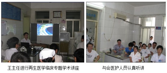 2011年10月19日,中国中西医结合学会烧伤专业委员会常委兼秘书、中国烧伤创疡杂志社副总编辑、北京美宝烧伤创疡研究所副所长、第二临床研究部主任王洪生研究员应邀到该院骨科与烧伤外科做“再生复原疗法在难愈性创面治疗新进展”临床专题学术讲座,该科所有医护均参加了讲座,在学术讲座中,王主任对烧伤的深度划分结合临床图片做了生动的讲解,对各种难愈性创伤、溃疡创面的规范处理方法与技巧做了详细地讲解。