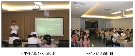 2011年10月17日,中国中西医结合学会烧伤专业委员会常委兼秘书、《中国烧伤创疡杂志》副总编辑、北京美宝烧伤创疡研究所副所长、第二临床研究部主任王洪生研究员应邀到该院神经外科做“再生复原疗法对难愈性创面的治疗新进展”临床专题学术讲座,该科三个病区的护士长及全体护理人员参加了学术讲座,在学术讲座中,王主任对各种难愈性创伤、溃疡创面的规范处理方法与技巧利用多媒体教学方式,结合大量的图片及录像资料进行了详细讲解。