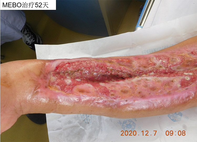 患者右上肢被机器绞伤10天、加重5天后,于10月16 日,来到北京南苑医院烧伤创疡科,当时右上肢广泛皮肤软组织绞挫撕脱伤并感染、右侧桡骨中远段多发开放性骨折、右尺骨茎突骨折。北京南苑医院烧伤创疡科采用了烧伤创疡再生医疗技术,在原位培养皮肤组织器官再生,并配合微粒皮移植术以加速创面愈合。这位在外院多家大医院均被告知需要截肢的病人在南苑医院不仅成功保住了肢体,还恢复了部分功能并在进一步康复中,已于12月10出院。