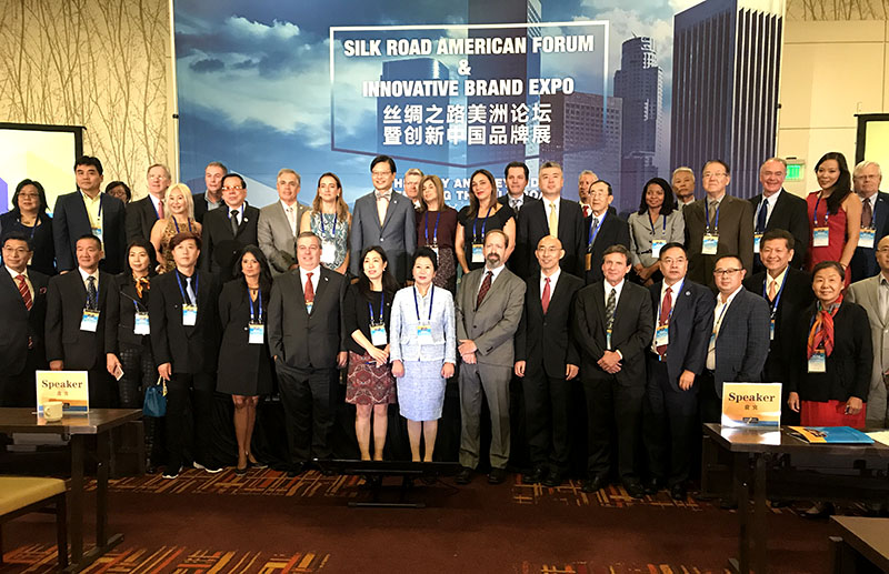 2017年11月2日,“丝绸之路 美洲论坛”在洛杉矶市中心万豪酒店举办。来自中国、巴拿马、加拿大及美国当地的政、商及智库名人约200人出席了此次大会。此为首次主流经贸论坛,主要议题探讨沿太平洋商路的往昔与未来,从实务的角度分析与研究环太平洋地区贸易发展的状况与未来合作前景,形成高端人脉与企业高效交流互动,并达成了诸多合作意向与合作成果。
