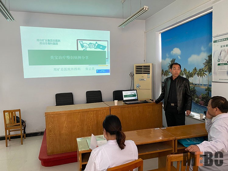 11月18日,河北省中西医结合学会慢创专委会委员孙道钧主任,应邀来到邯郸市第二医院内分泌科,为该科室医护人员进行了一场《烧伤创疡再生医疗技术讲座》,并会诊了两例难愈合压疮患者,演示了再生医疗技术规范换药过程,参会人员表示收货满满,对孙主任的精湛医术和再生医疗技术的治疗效果给予了高度评价!
