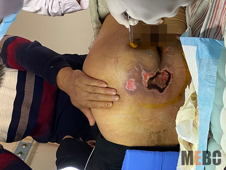 11月8-9日,再生医学知名专家、《中国烧伤创疡杂志社》常务编委赵瑞庆主任应邀到如皋市人民医院、如皋市中医院会诊了两例慢创患者。一例为42岁男性外伤所致截瘫9年,左臀部滑襄型4*4*6cm褥疮,曾到上海医治未愈。另一例为90岁女性老人,左骼外侧10*5*3cm溃疡型褥疮。赵教授实地演示了再生技术操作程序,并与当地医务人员深入沟通,针对慢性创面治疗的特殊情况,做了进一步的指导。