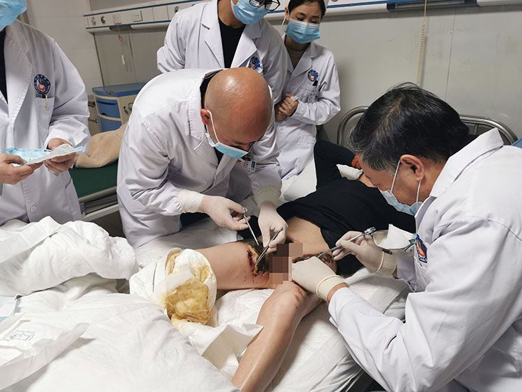 11月17日,享受国务院特殊津贴专家、中国中西医结合烧伤专业委员会顾问、中国研究型医院学会创面防治与损伤组织修复专业委员会委员、中国中西医结合学会再生医疗技术委员会创疡学组首席专家、《中国烧伤创疡杂志》常务编委、成都市郫都区人民医院烧伤创疡科学术带头人付子俊教授应惠水县中医院的邀请,到该院会诊两名烧伤病人,付教授亲自进行手术,换药,并结合病人给出治疗方案,极大增强了该院应用再生医疗技术的信心。
