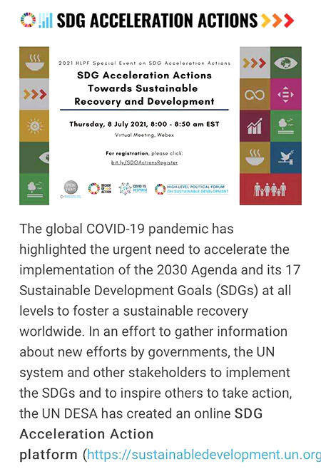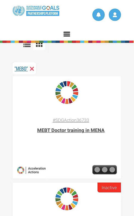 全球新冠肺炎疫情仍然十分严重,迫切需要加速行动全面实现《2030年可持续发展议程》及17个可持续发展目标,以促进世界可持续复苏。为了解联合国和其他相关组织以及各国政府在履行可持续发展目标和鼓励采取行动方面的信息,联合国经济和社会理事会创建了在线可持续发展目标加速行动平台。美宝国际提出的在中东和北非地区开展的MEBT培训项目倡议(即联合国36733倡议)亦被纳入联合国可持续发展目标加速行动平台,高效践行,以充分发挥该项目在新冠肺炎疫情期间对中东和北非地区的重要意义。