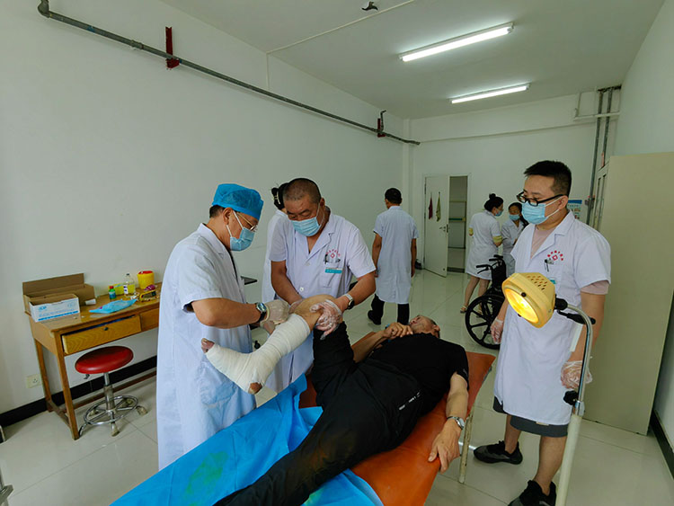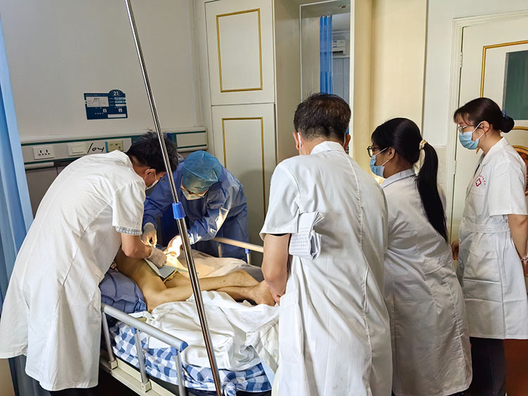 2024年7月15—16日,《中国烧伤创疡杂志》编委、烧伤创疡再生医疗技术临床专家张强主任应邀前往滁州市中西医结合医院和安徽涵博健康集团医院,分别会诊一例褥疮病人和一例糖尿病足患者,张强主任亲自示范指导换药,并就换药过程中要注意的细节问题和医生进行讲解,针对病人的病情给出了后续治疗方案,得到患者及医生的高度赞赏。